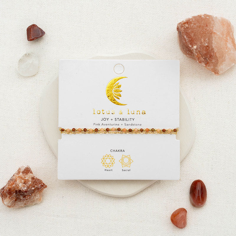 Let the Joy + Stability 2mm Healing Bracelet be your daily touchstone for inner balance and strength. This powerful blend of Pink Aventurine and Sandstone is more than an accessory; it's a constant companion designed to align your spirit and nurture your well-being. Each stone is hand-selected to work in harmony, helping you to clear your mind of negativity and bring an enveloping sense of serenity and purpose.
