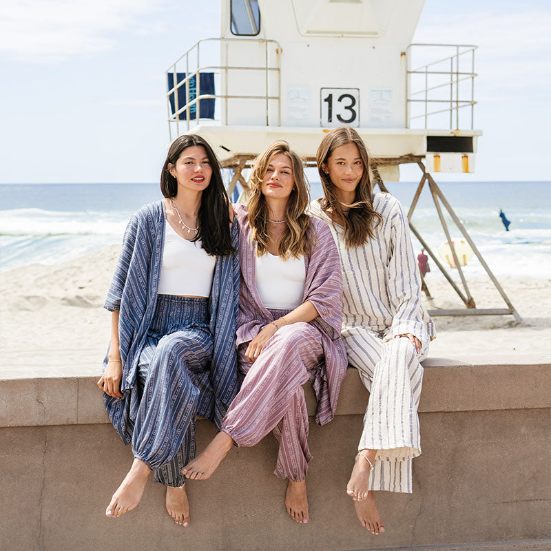 Absolutely love my pants and matching kimono! Just the outfit I need for my upcoming retreat! I’m 5’1/ 130lbs and the petite small fits perfect. What makes these so special is the note about the maker including in the packaging! Make them even more beautiful.